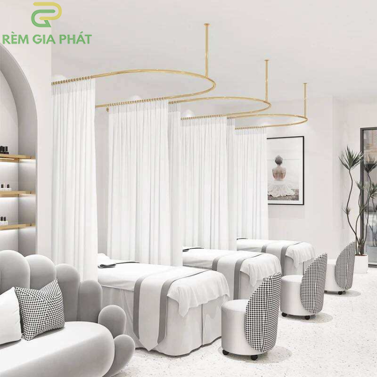 Khi chọn rèm ngăn phòng, các chủ spa thường chọn rèm 2 lớp, một lớp vải dày dặn để che chắn tạo ra không gian riêng tư và một lớp voan mỏng để tăng sự uyển chuyển trong di chuyển. Những mẫu rèm thường được chọn đồng bộ để tăng sự sang trọng, quyến rũ cho căn phòng.