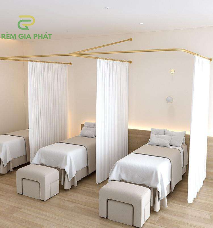 Để tối ưu không gian, các spa thường đặt nhiều giường đơn trong cùng một phòng. Lúc này, rèm sẽ phát huy chức năng ngăn phòng để tạo ra không gian riêng tư, kín đáo cho các khách hàng.