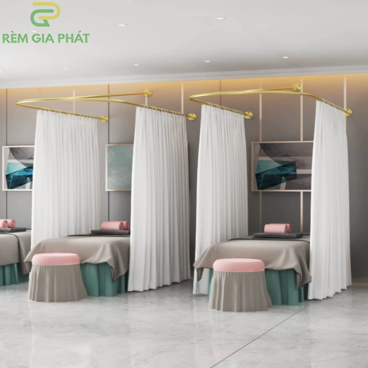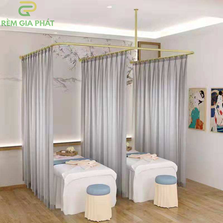 Khi chọn rèm ngăn phòng, các chủ spa thường chọn rèm 2 lớp, một lớp vải dày dặn để che chắn tạo ra không gian riêng tư và một lớp voan mỏng để tăng sự uyển chuyển trong di chuyển. Những mẫu rèm thường được chọn đồng bộ để tăng sự sang trọng, quyến rũ cho căn phòng.