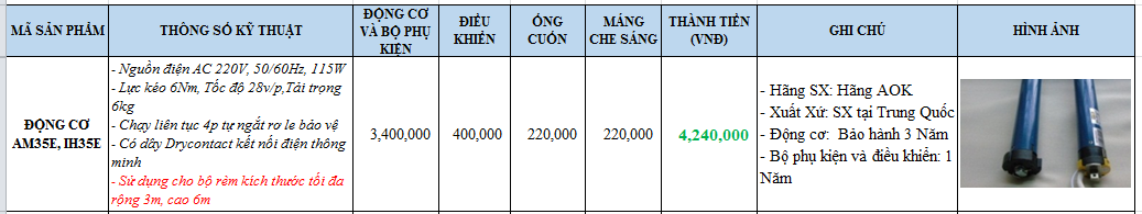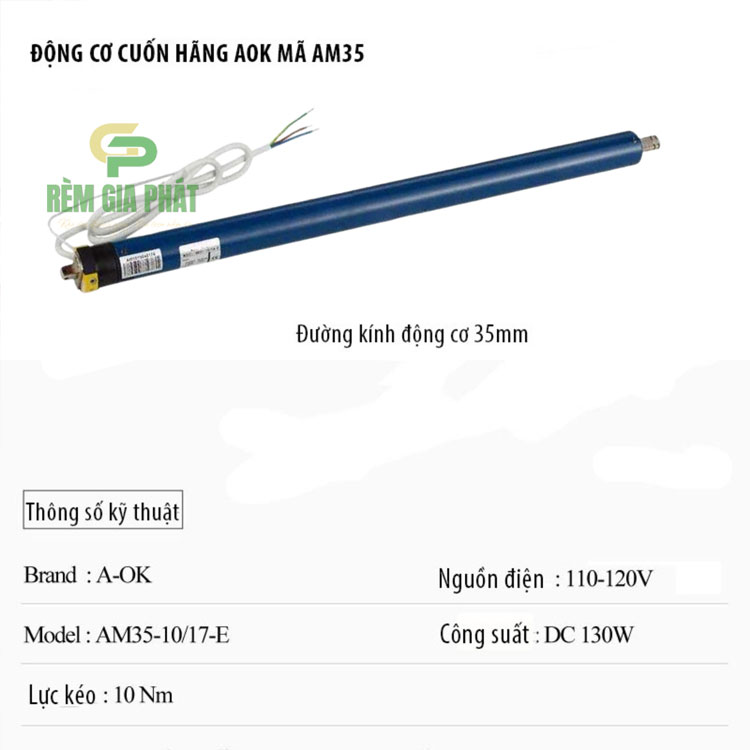 THÔNG SỐ KỸ THUẬT MOTOR RÈM AOK AM35
