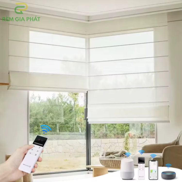 Sử dụng Hệ rèm Roman tự động hoàn toàn loại bỏ được những dây kéo rườm rà.