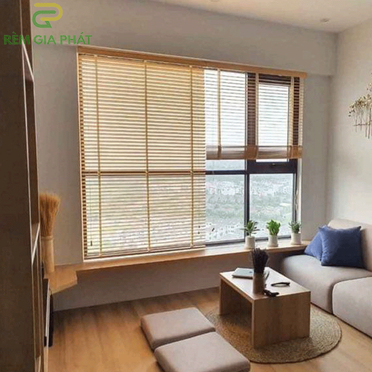 Mẫu rèm gỗ phòng khách – Chất liệu gỗ thông tuyết hãng Gracehome bản 5cm