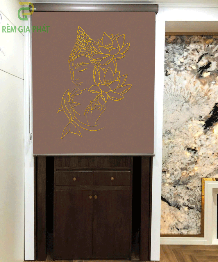 Rèm che ban thờ in tranh họa tiết hoa sen mã RCBT – 01272