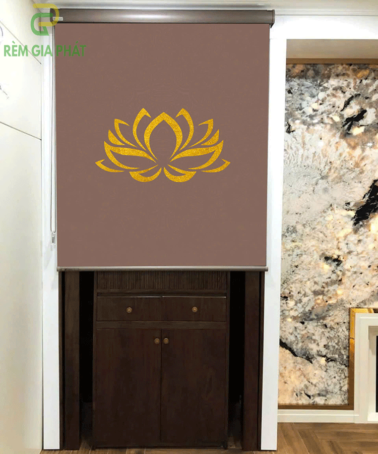 Rèm che ban thờ in tranh họa tiết hoa sen mã RCBT – 01287