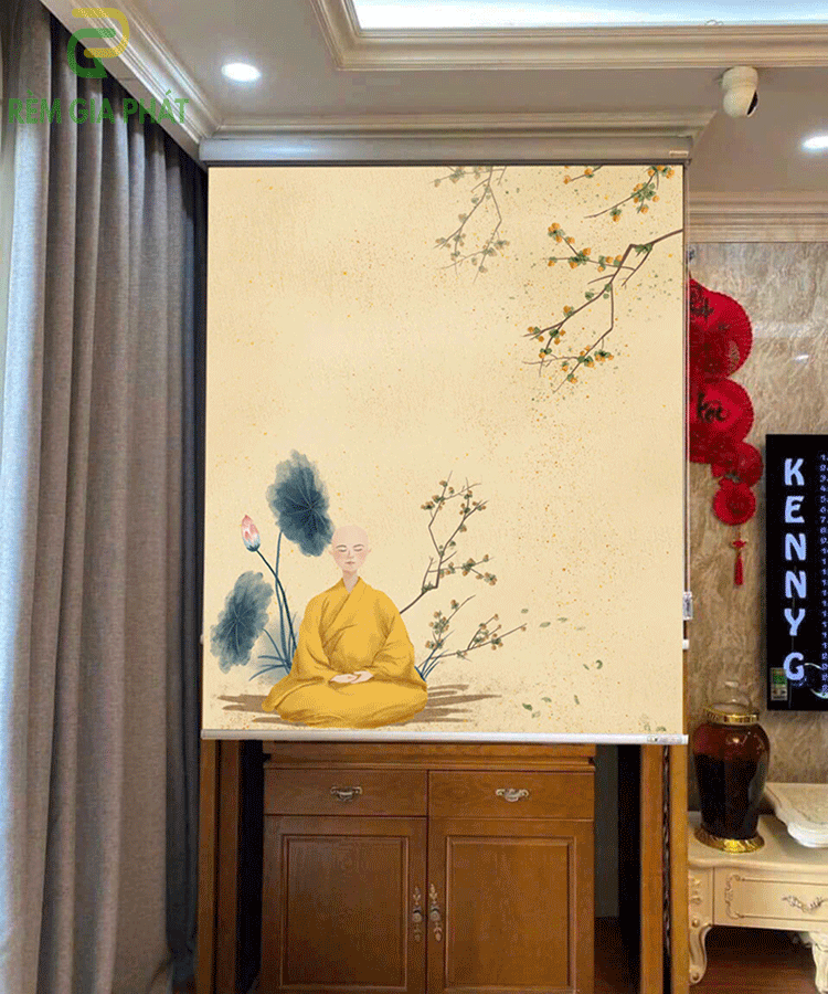 Rèm che ban thờ in tranh họa tiết hoa sen mã RCBT – 01290