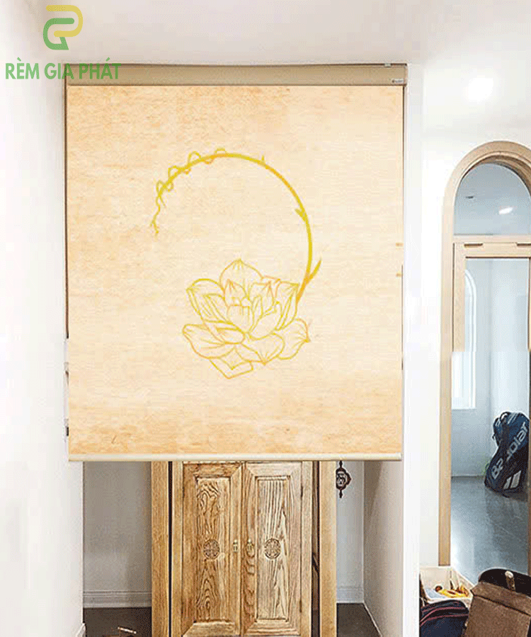 Rèm che ban thờ in tranh họa tiết hoa sen mã RCBT – 01247