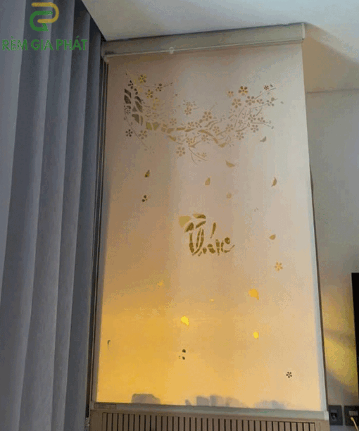 Rèm cuốn che bàn thờ khắc laze họa tiết hoa sen RKBT-1248