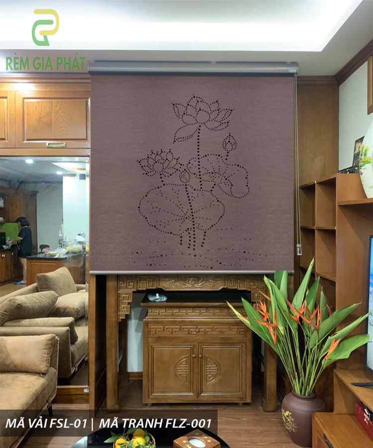Rèm cuốn che bàn thờ khắc laze họa tiết hoa sen RKBT-1270