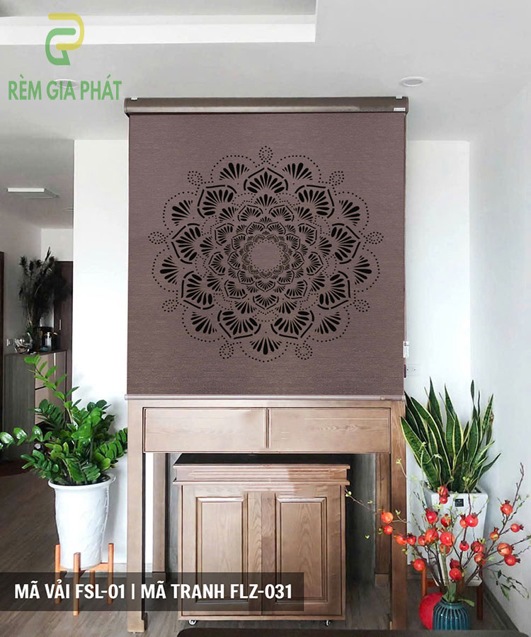 Rèm cuốn che bàn thờ khắc laze họa tiết hoa sen RKBT-1273