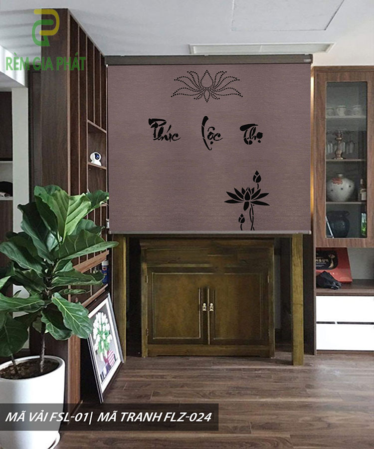 Rèm cuốn che bàn thờ khắc laze họa tiết hoa sen