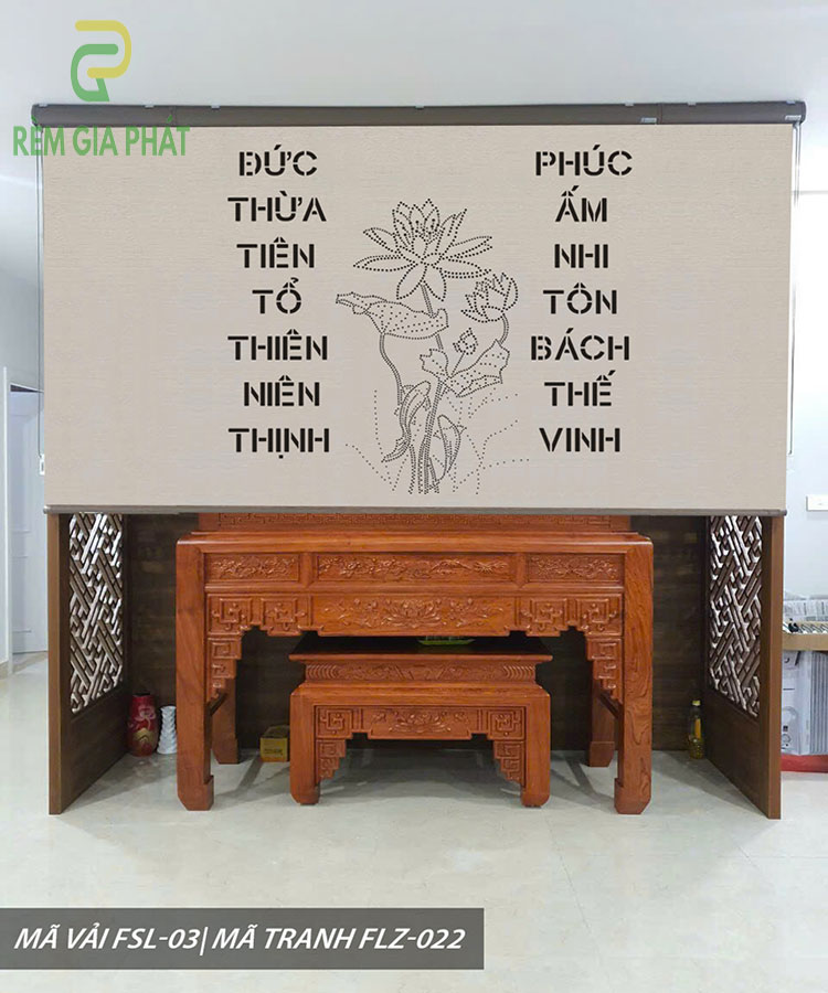 Rèm cuốn che bàn thờ khắc laze họa tiết hoa sen RKBT-1281