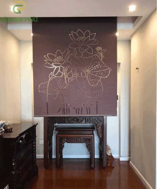 Rèm cuốn che bàn thờ khắc laze họa tiết hoa sen RKBT-1253