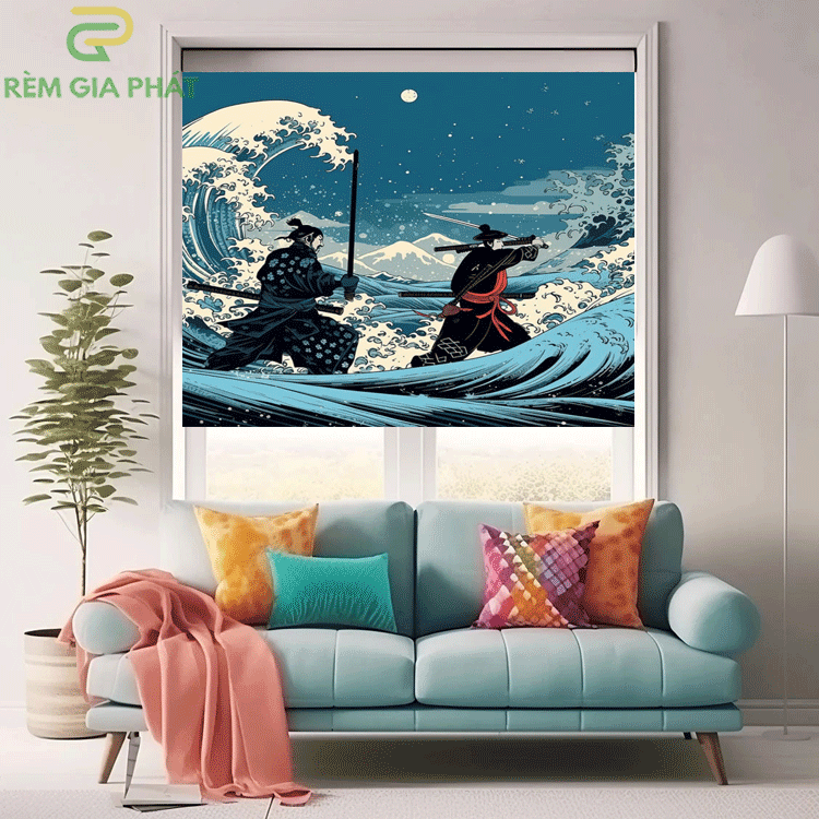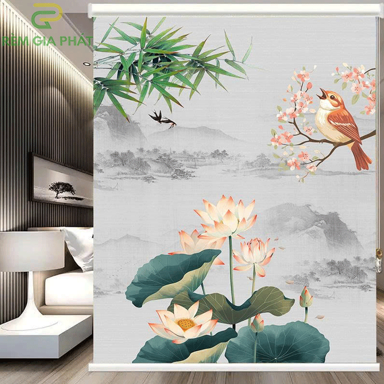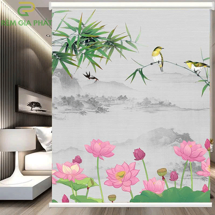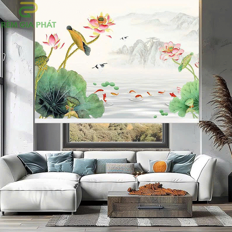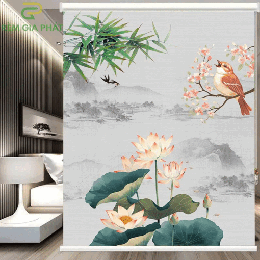 Rèm cuốn in tranh cửa sổ hãng Fivestar mã T2143-01 – Hệ phụ kiện máng thường