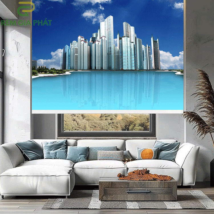 Rèm cuốn in tranh cửa sổ hãng Fivestar mã T2146-01 – Hệ phụ kiện máng thường