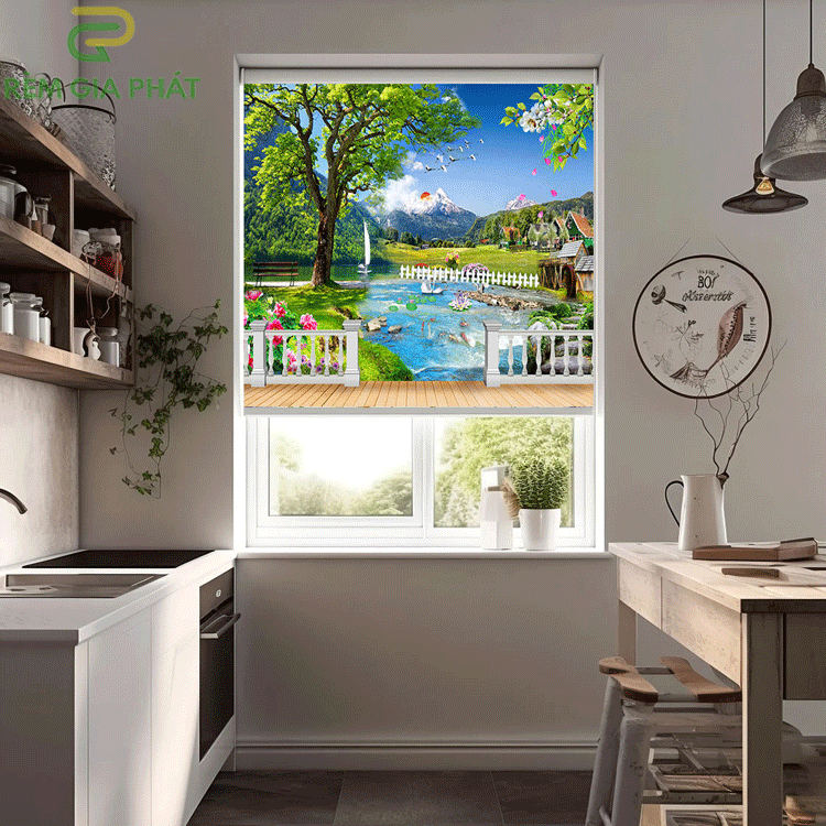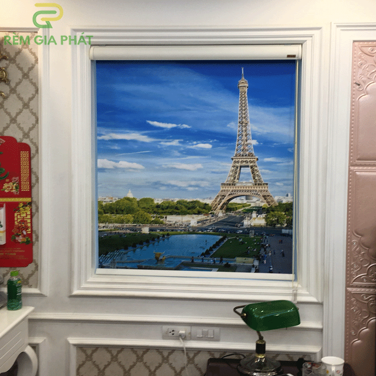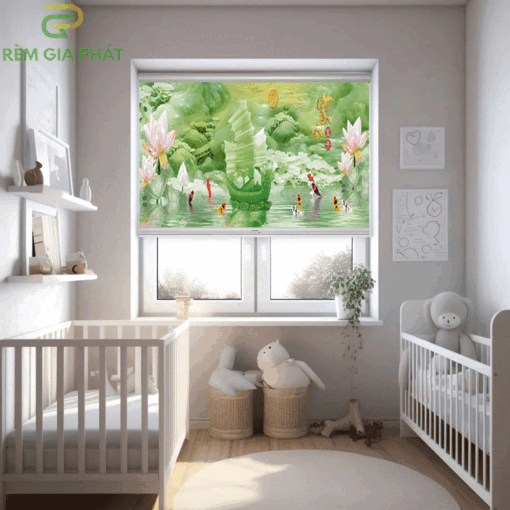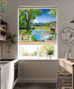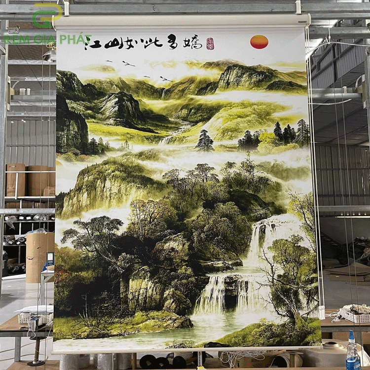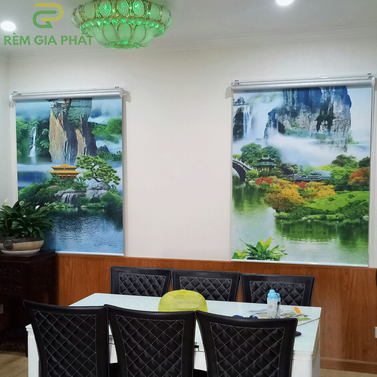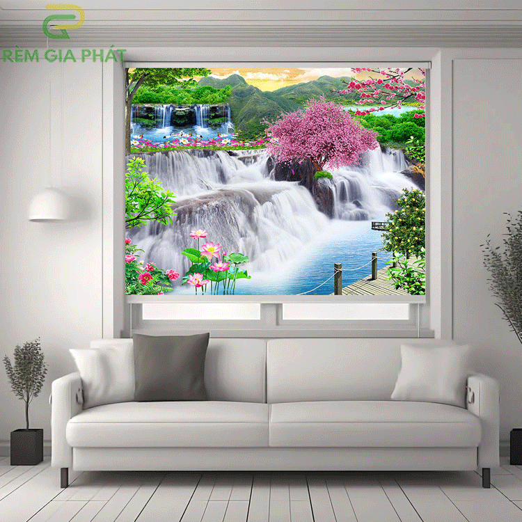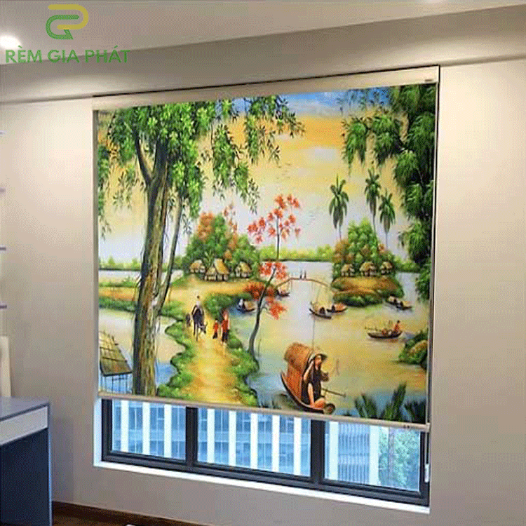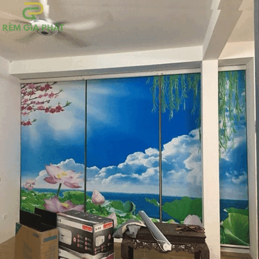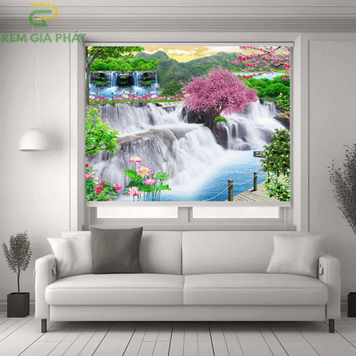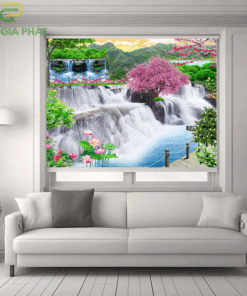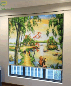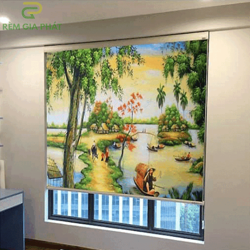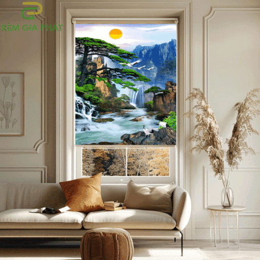 Rèm giá rẻ dạng cuốn in tranh cho phòng khách hãng Fivestar mã T2186-01