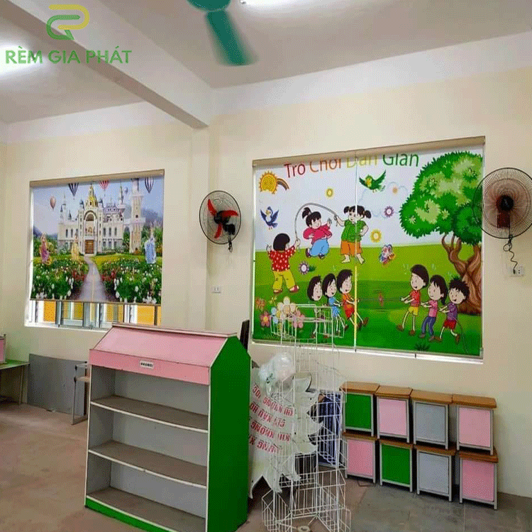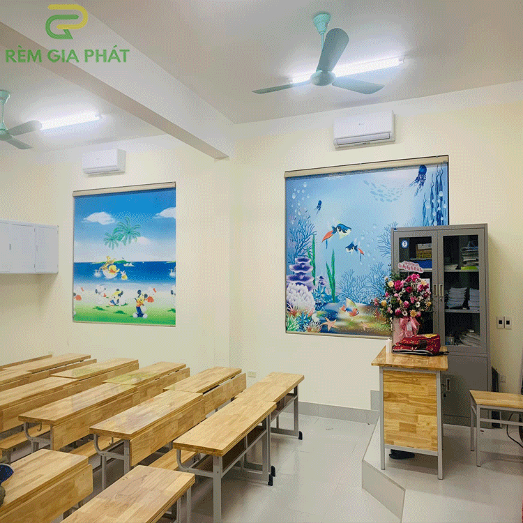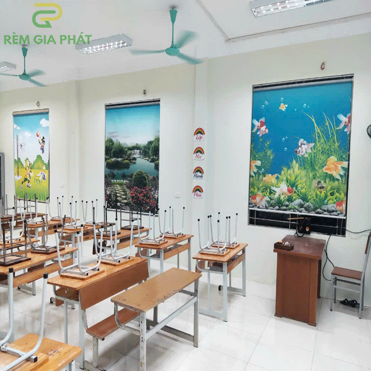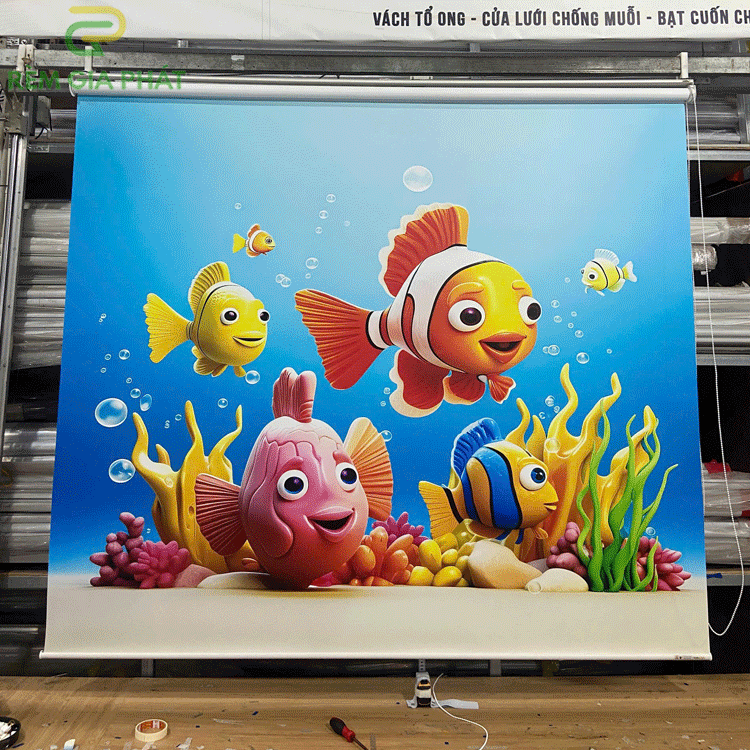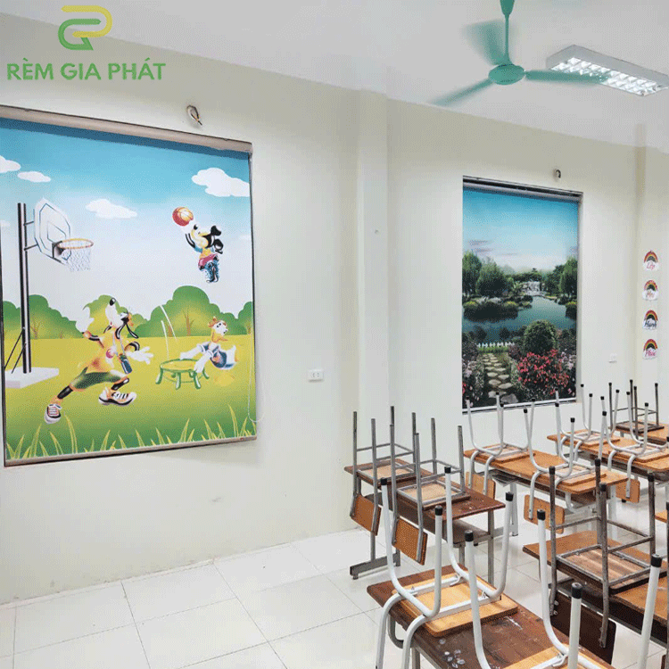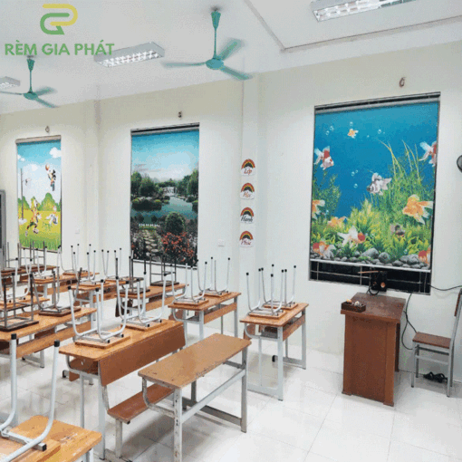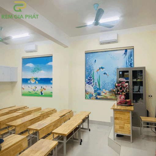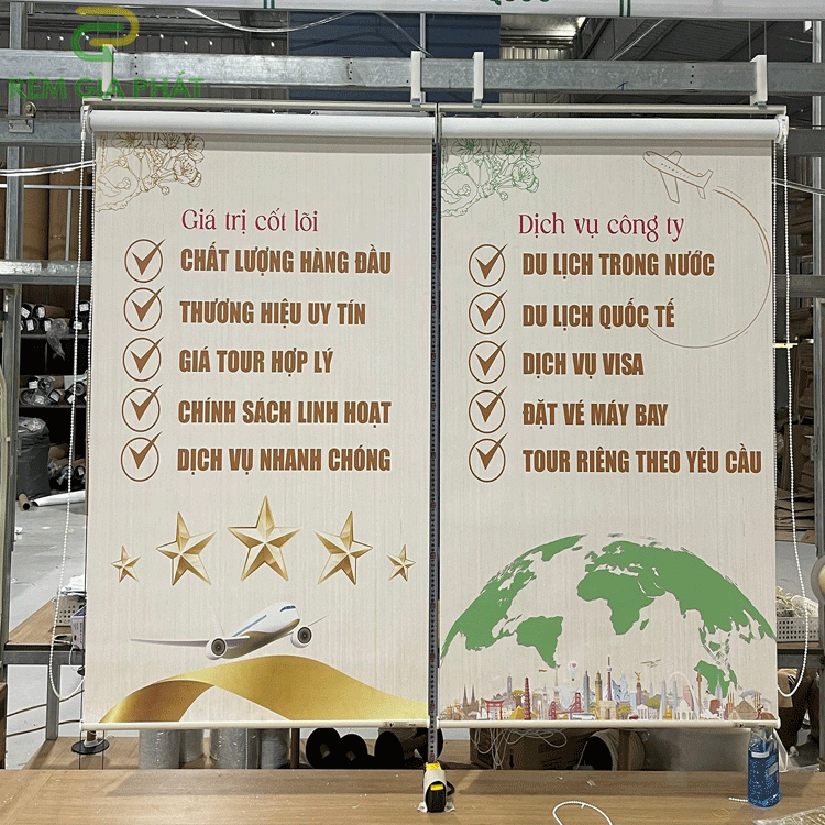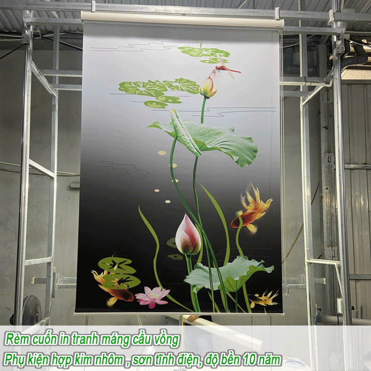 Rèm giá rẻ dạng cuốn in tranh cho phòng khách hãng Fivestar mã T2186-01