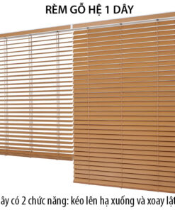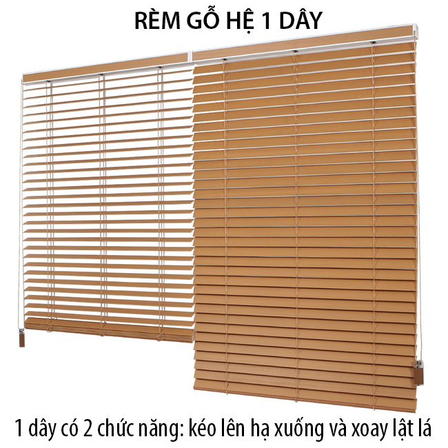 Rèm gỗ hệ 1 dây: 1 dây có đồng thời cả 2 chức năng là kéo lên hạ xuống và xoay lật lá