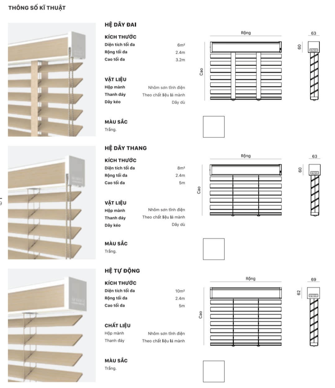 Phụ kiện và thiết kế rèm cửa gỗ hệ 1 dây