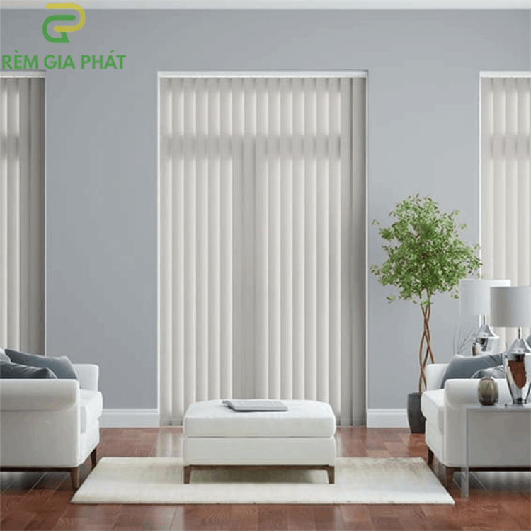 Rèm lá dọc làm bằng chất liệu vải phủ nhựa chống nắng 100%, rèm có khả năng xoay lật phải/trái 180 độ, kéo hết sang 1 bên hoặc đều 2 bên giúp bạn dễ dàng điều chỉnh mức độ ánh sáng.