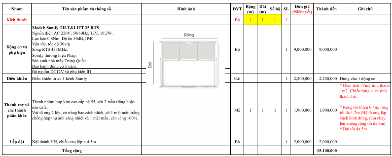 BÁO GIÁ RÈM TRẦN TỔ ONG SOMFY HỆ 55MM
