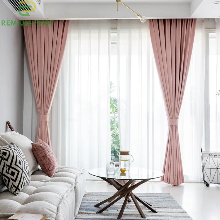 Rèm vải phòng ngủ chung cư một màu đẹp mã DIM2919 – 06