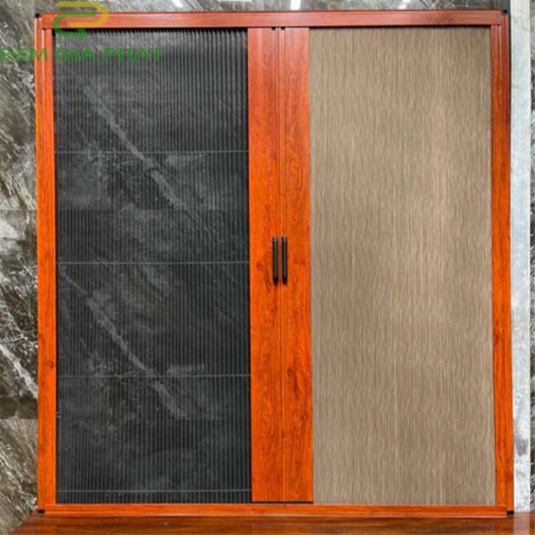 Vách tổ ong kết hợp cửa lưới chống muỗi – Hệ Pro 2.7 – Màu vân gỗ